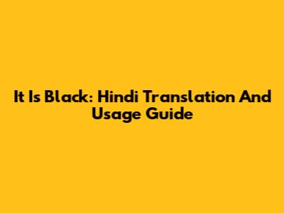 It Is Black: Hindi Translation And Usage Guide