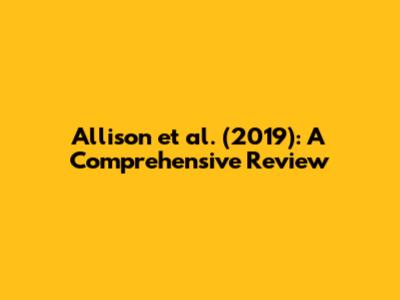 Let's dive into the groundbreaking work of Allison et al. (2019). This study has significantly impacted its field, and in this comprehensive review, we'll break down its key components, discuss its implications, and explore its relevance in today's context. So, buckle up, guys, because we're about to embark on an exciting journey through scientific literature!