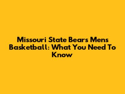 Missouri State Bears Men's Basketball: What You Need To Know