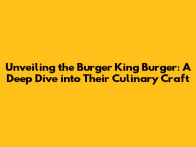 Unveiling the Burger King Burger: A Deep Dive into Their Culinary Craft