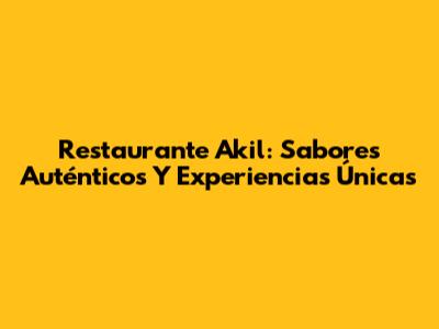 Restaurante Akil: Sabores Auténticos Y Experiencias Únicas