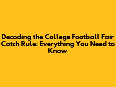 Hey sports fanatics, let's dive headfirst into the fascinating world of college football, focusing on a rule that often sparks debate and confusion: the fair catch rule. Whether you're a seasoned armchair quarterback or a newbie just getting into the game, understanding this crucial aspect of special teams can significantly enhance your viewing experience. So, grab your favorite game-day snacks, settle in, and let's break down everything you need to know about the fair catch rule in college football!