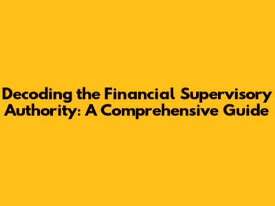 Decoding The Financial Supervisory Authority: A Comprehensive Guide