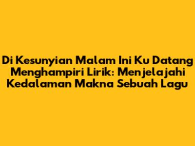 Guys, mari kita bedah lebih dalam lagi lirik yang powerful ini, "Di kesunyian malam ini ku datang menghampiri." Kedengarannya sederhana, tapi menyimpan segudang makna yang bisa bikin kita merenung panjang lebar. Kita akan coba kupas dari berbagai sudut pandang, biar kalian semua makin paham kenapa lirik ini begitu membekas di hati banyak orang.
