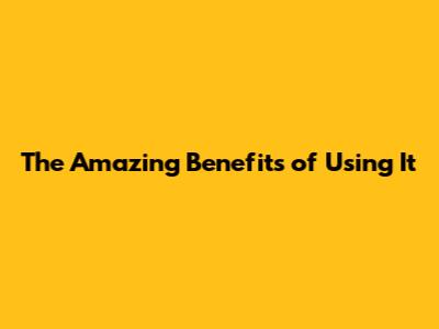 The Amazing Benefits of Using It