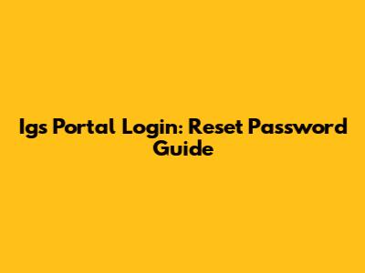 Igs Portal Login: Reset Password Guide