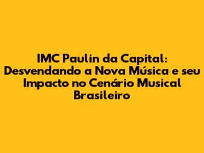 Impacto e Relevância: A Música de IMC Paulin da Capital na Cultura Contemporânea
