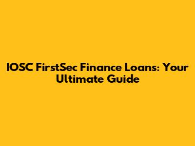 IOSC FirstSec Finance Loans: Your Ultimate Guide