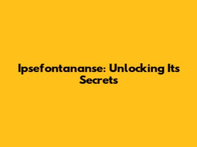 Ipsefontananse: A Comprehensive Guide