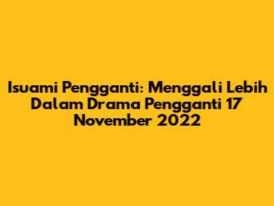 Isuami Pengganti, apa sih yang sebenarnya terjadi? Guys, kita semua tahu, dunia hiburan itu penuh kejutan, kan? Nah, baru-baru ini, jagat media sosial dan dunia pertelevisian Indonesia diramaikan dengan isu mengenai drama terbaru yang berjudul "Isuami Pengganti". Pertanyaannya, apakah drama ini benar-benar akan menjadi pengganti acara yang tayang pada tanggal 17 November 2022? Mari kita bedah lebih dalam, mulai dari rumor, fakta, hingga spekulasi yang beredar. Siap-siap, karena kita akan menyelami dunia drama yang penuh intrik ini!