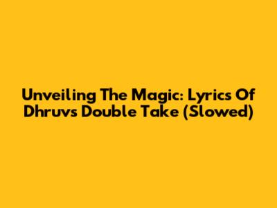 Unveiling The Magic: Lyrics Of Dhruv's Double Take (Slowed)