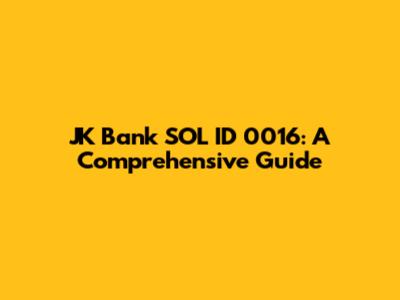 JK Bank SOL ID 0016: Complete Guide