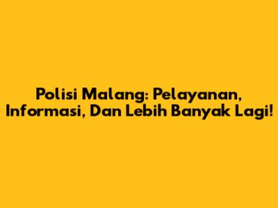 Polisi Malang: Pelayanan, Informasi, Dan Lebih Banyak Lagi!