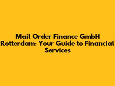 Hey guys! Let's dive into everything you need to know about Mail Order Finance GmbH in Rotterdam. Whether you're a local business owner or someone just curious about financial services, this guide will give you the lowdown on what they offer, how they operate, and why they might be the right choice for you. So, buckle up and let's get started!