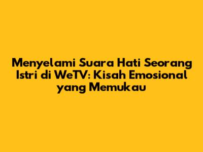 'Suara Hati Seorang Istri' di WeTV telah berhasil mencuri perhatian banyak penonton dengan alur ceritanya yang menyentuh dan penuh emosi. Guys, drama ini bukan hanya sekadar tontonan, tetapi juga cerminan dari berbagai permasalahan yang seringkali dialami oleh para istri dalam kehidupan nyata. Dari konflik rumah tangga hingga perjuangan batin, drama ini menyajikan berbagai lapisan cerita yang membuat penonton ikut merasakan suka dan duka para karakternya. Mari kita bedah lebih dalam mengenai drama yang satu ini, mulai dari sinopsis, karakter, hingga pesan moral yang bisa kita petik.