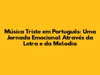 A música triste em português letra tem um impacto profundo em nossas emoções e bem-estar. Ouvir essas canções pode desencadear uma série de sentimentos, desde tristeza e melancolia até reflexão e consolo. Mas por que nos sentimos atraídos por esse tipo de música, e como ela nos afeta?