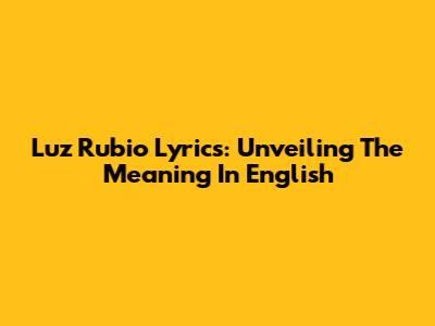 Luz Rubio Lyrics: Unveiling The Meaning In English