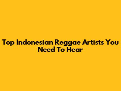 Top Indonesian Reggae Artists You Need To Hear