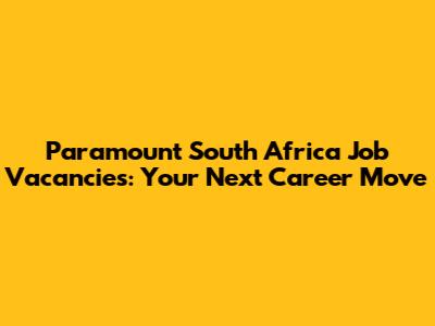 Paramount South Africa Job Vacancies