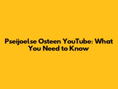 Pseijoelse Osteen YouTube: What You Need To Know