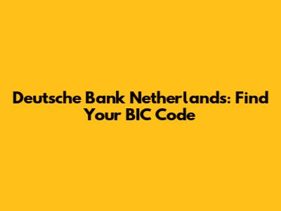 Deutsche Bank Netherlands: Find Your BIC Code
