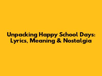 Unpacking 'Happy School Days': Lyrics, Meaning & Nostalgia