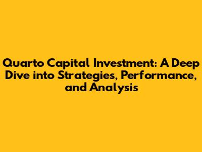 Quarto Capital Investment: Strategies, Performance, And Analysis