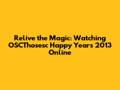 Relive The Magic: Watching OSCThosesc Happy Years 2013 Online