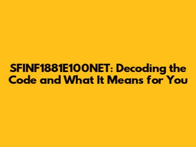 SFINF1881E100NET: Everything You Need To Know