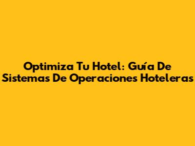 Optimiza Tu Hotel: Guía De Sistemas De Operaciones Hoteleras