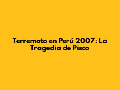El Epicentro del Desastre: Pisco y la Región de Ica