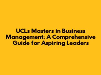 UCL's Masters In Business Management: Your Guide