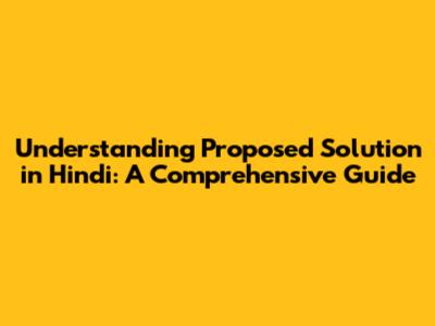 Understanding 'Proposed Solution' In Hindi: A Comprehensive Guide