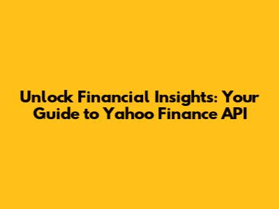 Unlock Financial Insights: Your Guide To Yahoo Finance API
