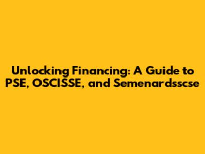 Unlocking Financing: A Guide To PSE, OSCISSE, And Semenardsscse