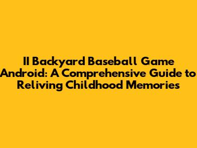 Unlocking Nostalgia: Guide To II Backyard Baseball On Android
