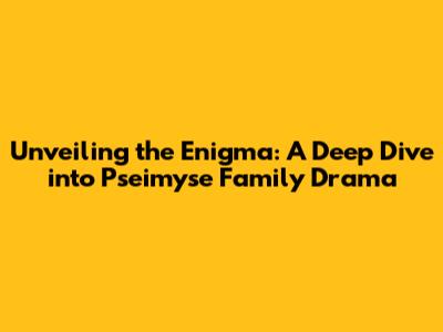 Unveiling The Enigma: A Deep Dive Into Pseimyse Family Drama