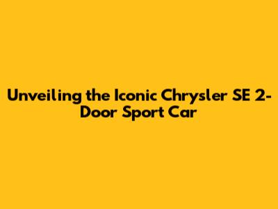 Hey car enthusiasts! Today, we're diving headfirst into the world of a true classic: the Chrysler SE 2-door sport car. This beauty, a symbol of sleek design and raw power, has captured the hearts of drivers for generations. We're going to break down everything you need to know about this amazing machine, from its history to the experiences it offers. Buckle up, guys, it's going to be an exciting ride!