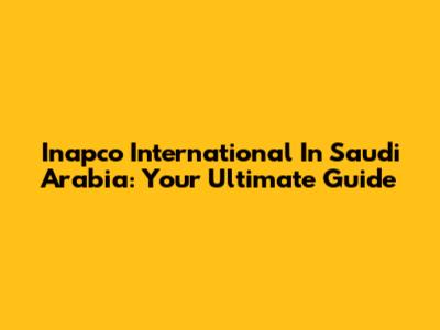 Inapco International In Saudi Arabia: Your Ultimate Guide