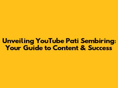 Unveiling YouTube Pati Sembiring: Your Guide To Content & Success
