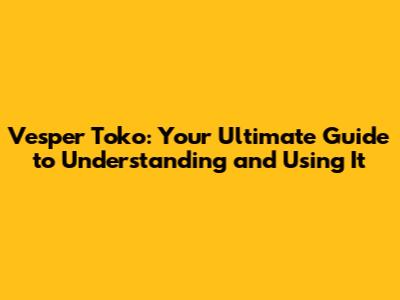 Vesper Toko: Your Ultimate Guide