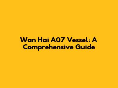 Wan Hai A07 Vessel: Everything You Need To Know